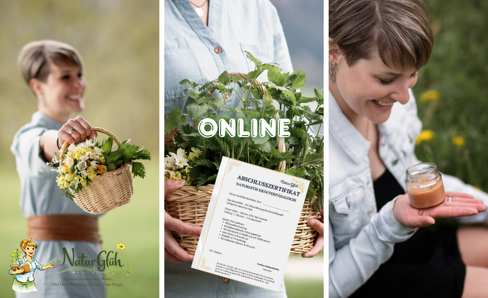 👉 Mit Videos, Live Termine Online, Flipcharts, praxisnahen Impulsen und Rezepten kannst du das ganze Naturwissen auch bequem von Zuhause aus erleben – Schritt für Schritt, genauso lebendig und anschaulich wie in meinem Vor-Ort-Zertifikatslehrgang.